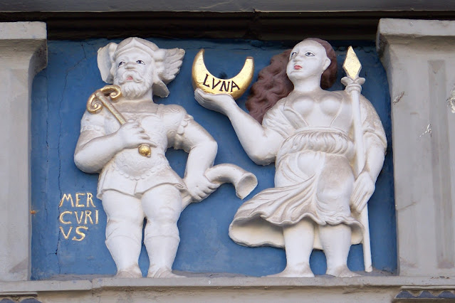 Les deux femmes de la frise, la Lune et Vénus, toutes deux vêtues d'une longue robe sans forme, les cheveux défaits et une lance à la main, semblent être un même personnage. Ces figures pourraient avoir été extraites de l’œuvre de l'illustrateur allemand Hans Sebald Beham (1500-1550), dans laquelle on trouvent des femmes lunaires ou vénusiennes munies d'une lance.